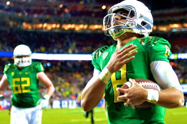 The victory also likely served as a Heisman Trophy coronation for Ducks quarterback Marcus Mariota, who is the heavy favorite to take home the honor.