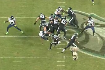 The Eagles had the ball on 2nd-and-7 right at midfield. They ran a read-option play with Sanchez keying on defensive end Cliff Avril. What followed was more grass-eating for running back LeSean McCoy (who averaged only 2.9 yards per carry on 17 attempts). As they did so often, the Seahawks found a balance between their trademark aggression and still playing patient defense while maintaining assignments.