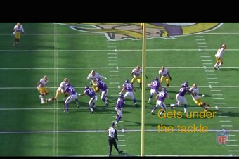 That's the type of impact and flexibility that can cause havoc, either from the base front or, as in this case, when Kerrigan aligns with his hands down in four-man, nickel front.