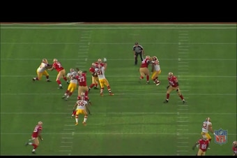 Once Kerrigan broke to the inside, right guard Alex Boone was scrambling to corral him. Not even a helping chip from running back Frank Gore slowed Kerrigan down: