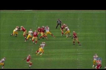 This sent Kaepernick fleeing from the pocket. Once again, though, he was running right into the waiting arms of Hatcher (97):