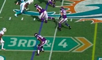 For his first touchdown against the Minnesota Vikings on Sunday, Tannehill made a quick decision to throw the ball down the field from another spread formation. He found Dion Sims in the end zone for the scoreābut, more significantly, he negated a blown block by right guard Mike Pouncey.
