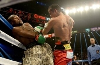 Event: Undefeated boxer Floyd Mayweather displays his remarkable ability to dodge blows during a fight against Marcos Maidana.