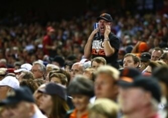 Event: A San Francisco Giants fan is extremely wound up on Opening Day against the Diamondbacks in Arizona.