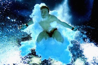 Event: A diver hits the water in the 10-meter platform final at the Commonwealth Games in Scotland.