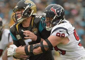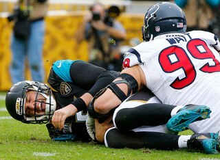 Event: Houston Texans defensive end J.J. Watt made life miserable for Jaguars rookie quarterback Blake Bortles when the division rivals faced off in Jacksonville late in the season.