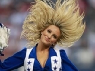 Event: A Dallas Cowboys cheerleader masters the art of the dramatic hair toss during a home game against the division rival New York Giants.