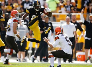 Event: Pittsburgh Steelers wide receiver Antonio Brown literally steps over (and on) Cleveland Browns punter Spencer Lanning while returning a punt in the season opener. He was penalized 15 yards for unnecessary roughness.