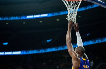 Event: Aging Lakers veteran Kobe Bryant takes a break from chucking up bricks and attempts to become one with the net in a game against the Pistons in Detroit.