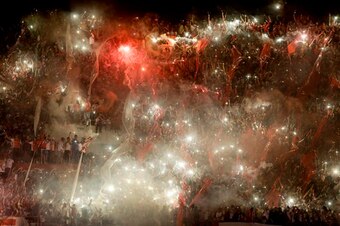 Event: Fans light up the night sky during a Copa Sudamericana match between Argentina and Colombia.