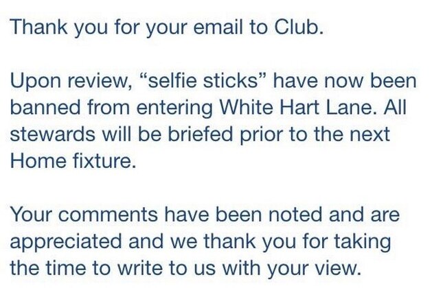 In a rare form of unity between hated north London neighbours Tottenham and Arsenal, both clubs have recently announced that they've banned 'selfie sticks' from White Hart Lane and the Emirates, respectively.