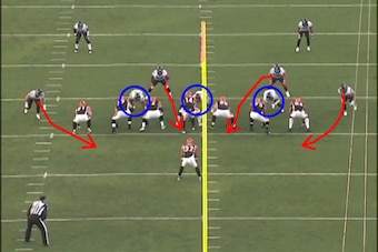The single-gap alignments also cover up inside linebackers. That makes it difficult for an offense to put blockers on them, allowing the middle 'backers the freedom to run to the ball and the space to blitz from any angle.