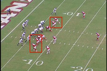 Notice how each of the linemen is positioned between blockers rather than head-up over them. The attack lanes are obvious.