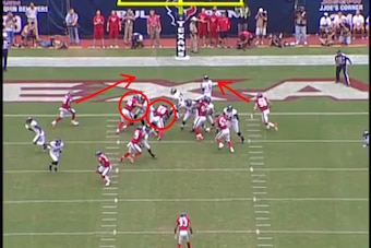 As the pressure closed in, Flacco had nowhere to go with the ball. Houston's Cover 1 look, underneath man coverage with a single-high safety, had locked up every available receiver: