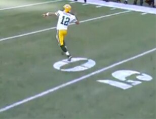 Rodgers eventually saw him but rushed again and caused the pass to sail over his head into the bench behind the receiver.