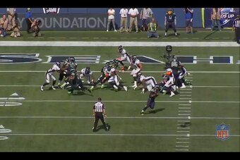 It's not impossible to defend the Seahawks running game, though. Here are a couple examples of solid fundamental defense against the zone. The first two screen shots depict the Denver Broncos against the outside zone, while the latter two show the St. Louis Rams against the Hawks' inside zone: