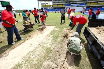 The game began at the Sir Vivian Richards Stadium, but it quickly became clear that the field was not in a fit state for play, especially from where the bowlers ran into the crease.