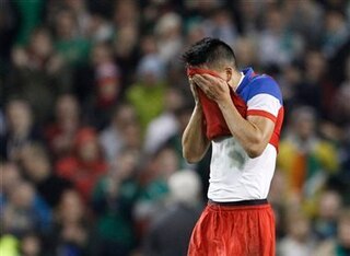 In the 37th minute he gave the ball away right in front of his own goal but was saved by 'keeper Nick Rimando.
