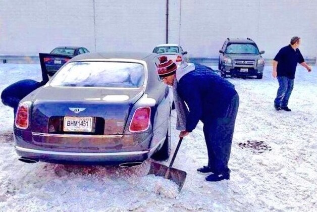 Another Twitter user tweeted out jacked an image from Adam Howe of the Chicago Bulls point guard communing in the time-honored tradition of numbly shoveling the snow from around his Bentley (we all have Bentleys).