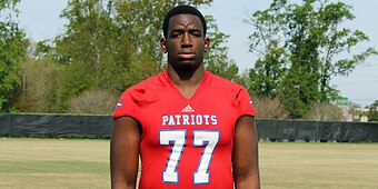 As Barton Simmons of 247Sports notes, the 6’7”, 285-pounder plays defensive end for Goose Creek (S.C.) High School, but his future may lie at the offensive tackle position.
