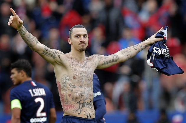 Zlatan Ibrahimovic's yellow card for taking his shirt off during Paris Saint-Germain's Ligue 1 game with Caen on Saturday looked typical enough, but it has since turned out that the Swede did so to reveal temporary tattoos to raise awareness of hunger.