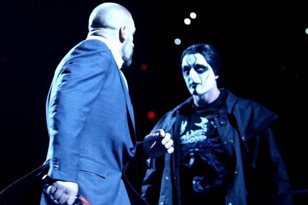 When Triple H called him out on Feb. 9, demanding that he give him an answer about whether he would meet him at the pay-per-view, Sting didn't just tell Triple H, "Yes." The lights went off. Men who appeared to be The Stinger popped up around the arena.