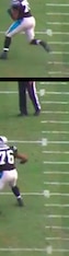 Hardy works into the body of the left tackle, using his strength and aggressiveness to knock him backward before the tight end can recover his positioning to create an effective double-team. At his deepest point of the play, Hardy appears to be blanketed by the two blockers.