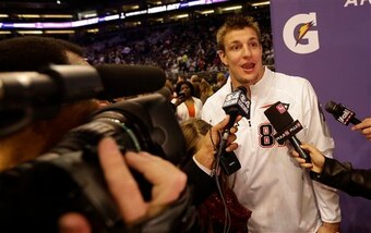 Then in 2015, at media day for Super Bowl XLIX, Gronkowski revealed that his celebrity crush as a kid was Pamela Anderson. It looks like someone is into blondes.