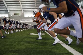 Syracuse is one of the programs in FBS that plays its games indoors—along with Idaho and UTSA—and now it has a practice facility that compliments the Carrier Dome. At a cost of $14 million, the Orange just opened the Ensley Athletic Center and is currently holding spring practice in there.