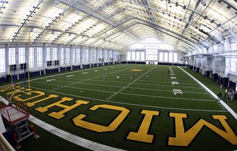 Michigan has one of the largest stadiums in college football, so it makes sense the Wolverines also have one of the most immense indoor practice fields at their disposal.