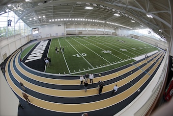 At more than 104,000 square feet, the Al Glick Field House is as spacious as you'll find in collegiate athletics. The five-year-old facility cost $26.1 million and is incredibly bright and airy, while also avoiding the cramped feeling that some indoor fields have because of extra space on the sidelines and beyond the end zones.