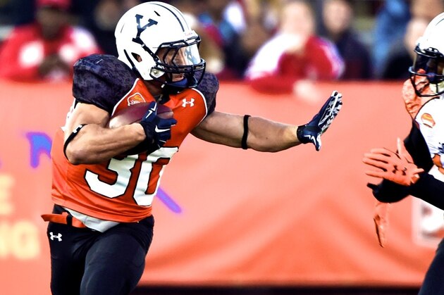 Varga certainly didn’t look to be in over his head at the Senior Bowl. To the contrary, Varga ran for 13- and seven-yard touchdowns, executed a lead block on a four-yard touchdown from teammate David Cobb and also caught three passes for 39 yards.