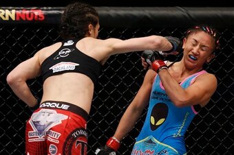The bout immediately lived up to its striker vs. grappler billing. Esparza showcased her relentless wrestling pressure, continuously trying to drag Jedrzejczyk to the mat, while the Polish contender found Esparza's chin with some crisp striking as the round continued.
