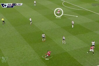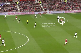 Running off Fellaini, who played left-centre-midfield but entered the No. 10 space with regularity, was Wayne Rooney: goalscorer, vertical threat and all-round handful for Eric Dier. The Englishman ran the channels, threatened to breach the space behind Spurs' high defensive line and linked with his midfielders superbly.
