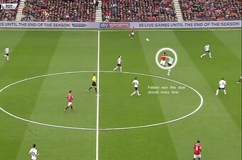That Spurs wholly failed to come up with a plan to deal with Marouane Fellaini's aerial prowess—not that it's easy, United struggled with him when he was an Everton player!—hardly helped their cause, and it allowed the hosts to establish a constant, effective passing connection to move themselves up the field: David De Gea to Fellaini. Basic, direct and simple, yet also mightily effective in skipping 50 yards.