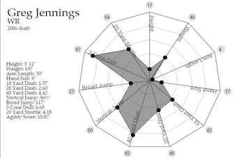 After ignoring Wright's bench press (Jennings didn't participate in that event), their scores match each other in a number of categories. With identical 40-yard dash times and similar heights, Jennings' only real physical advantage comes with his weight (still below average) and a much faster three-cone drill.