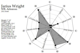 The first superficial look at the two receivers doesn't provide much differentiation. Wright and Jennings are physically very similar receivers and had some eerily similar combine scores. Per Mockdraftable, the spider graph on the two showcases their physical similarity.