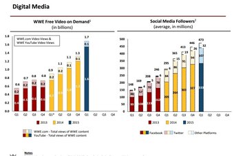 Clearly, WWE defines success in this space in terms outside of income. On the conference call, McMahon talked about how gaining followers right now is a "land grab" and that engagement is key to reaching the younger generation. In addition, the company views strong social media presence as evidence to show advertisers why WWE is important beyond TV ratings. Considering how much and how often WWE touts its social media stats, it will be intriguing to see whether it can truly translate its impressive social media foothold into the company's coffers.