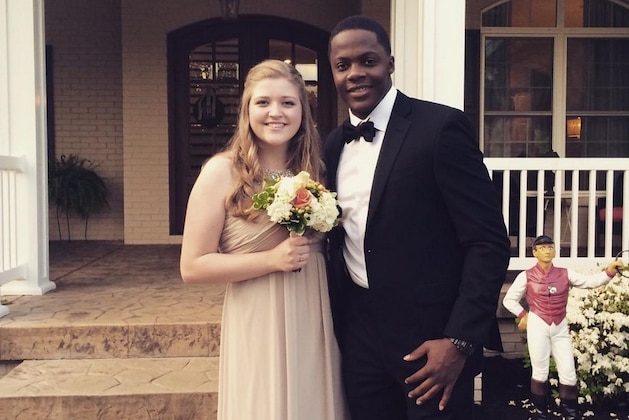 Walking into prom with an NFL quarterback had Davis smiling cheek to cheek: