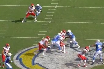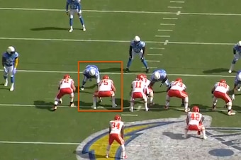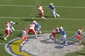 Although the Chargers tweaked their alignment and brought a linebacker blitzing off one edge while dropping the D-end on the other side into underneath coverage, it was the stunt that really caused havoc.