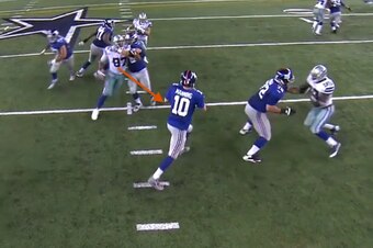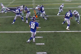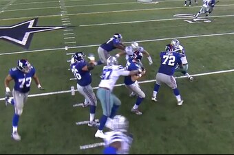 Despite Snee holding Hatcher and trying to push him out of the throwing lane, the nimble D-tackle redirected his body and still pressed the middle of the pocket. He moved quarterback Eli Manning off his spot, preventing him from setting his feet and launching a clean throw: