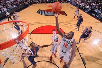 He's extraordinarily skilled, from his playmaking (five assists per game) to his scoring (19.3 points per game) and shooting (95 threes, 41.1 percent). And at 6'5" with a giant 6'9½" wingspan and reported 39" max vertical, per ESPN's Chad Ford, he has the size and athleticism to comfortably play either the 1 or 2.