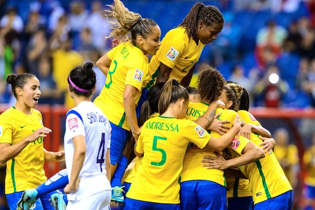 Brazil took control early, delighting the sparse crowd in Montreal with flicks and flair. Defender Fabiana struck the crossbar with a thundering effort from 30 yards in the third minute, but the Selecao had to wait until the 33rd minute to take the lead.