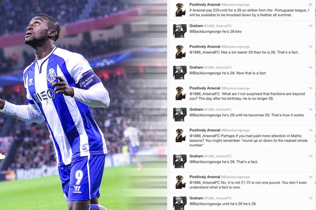 Two Arsenal fans had a conversation about whether Porto's Jackson Martinez is 28 or 29 years old—and it's mesmerising.