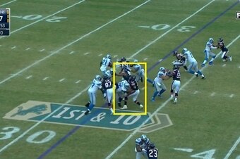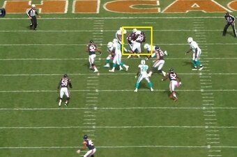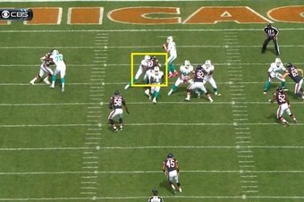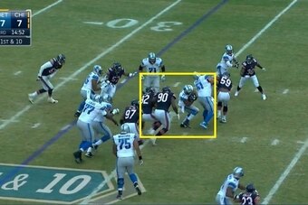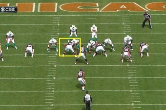 He plays with great technique, and that was on display last season when the Bears took on the Miami Dolphins in Week 7. On the first play from scrimmage, Ratliff lined up at the 3-technique defensive tackle spot opposite of the outside shoulder of the right guard: