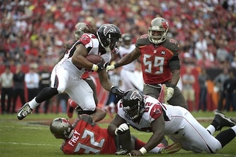 After years and years of horrible play from the right guard after the Falcons let Harvey Dahl go in 2010, Atlanta finally went out and signed a quality player to man the position in Jon Asamoah. His five-year, $22.5 million contract signed in 2014 is looking like a good value right now.