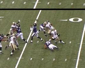 The Saints didn't blitz even though it was 3rd-and-long, but the Ravens left tackle was so late off the snap that the edge-rusher essentially got an unopposed run at the quarterback. Taylor was quick to drop back, and he never took his eyes away from the coverage.