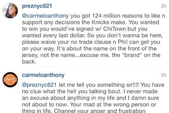 After posting a photo of him and former teammate Tim Hardaway Jr. on Friday night, Anthony took the time to respond to a number of commenters.