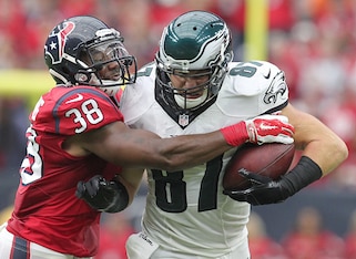 Quintin Demps (5’11”, 208 lbs, seven seasons) played in all 16 games this past season. Demps recorded 48 total tackles and four interceptions. The former UTEP Miner found himself playing most of his snaps at the strong safety position. Speed is not a concern for Demps, as he returned kickoffs for the Giants this past season. With that being said, he needs to improve on the angles he takes to the ball. With 10 missed tackles on the season, Demps should make tackling improvement an offseason priority so he isn’t just classified as a kick returner who can play some safety.