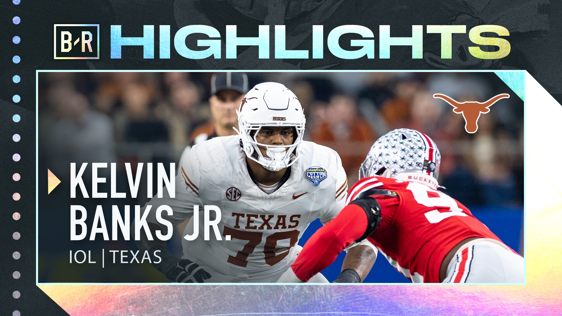 Kelvin Banks Jr. is a three-year starter at left tackle inside Texas' 52-48 run-pass split, multiple run scheme with a high rate of quick-game, RPOs and motion. Banks has good athletic ability with a compact build, solid arm length and play strength.